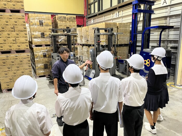 株式会社アクティーは、白山第3センターに金沢市立鳴和中学校の2年生17名をお迎えし、キャリア学習の一環として職場見学を実施しました。はじめに生徒の皆さんへ物流に関する基本的な説明をし、その後、実際に物流センター内部を案内して現場で働く人々の仕事を間近に感じていただきました。